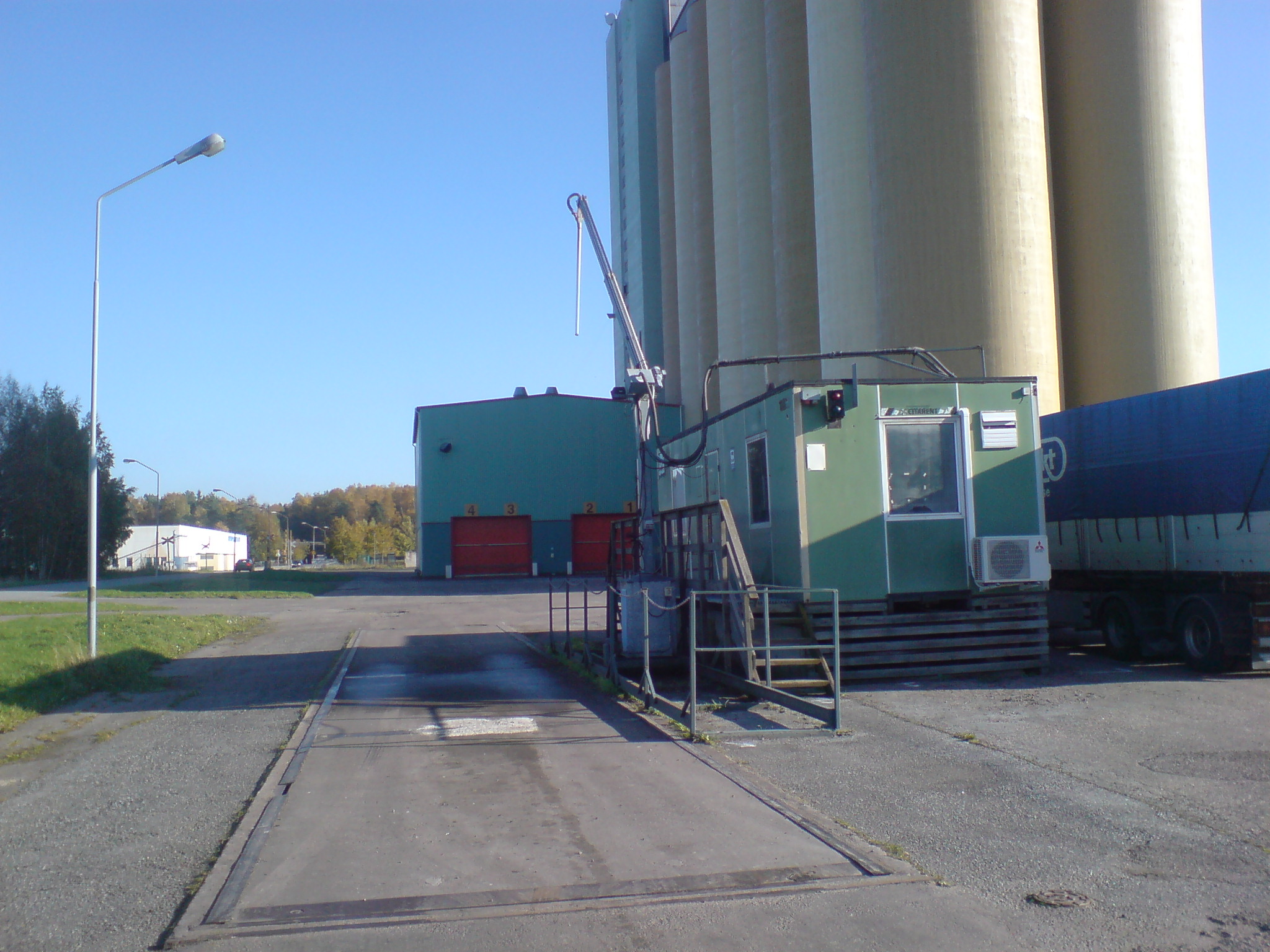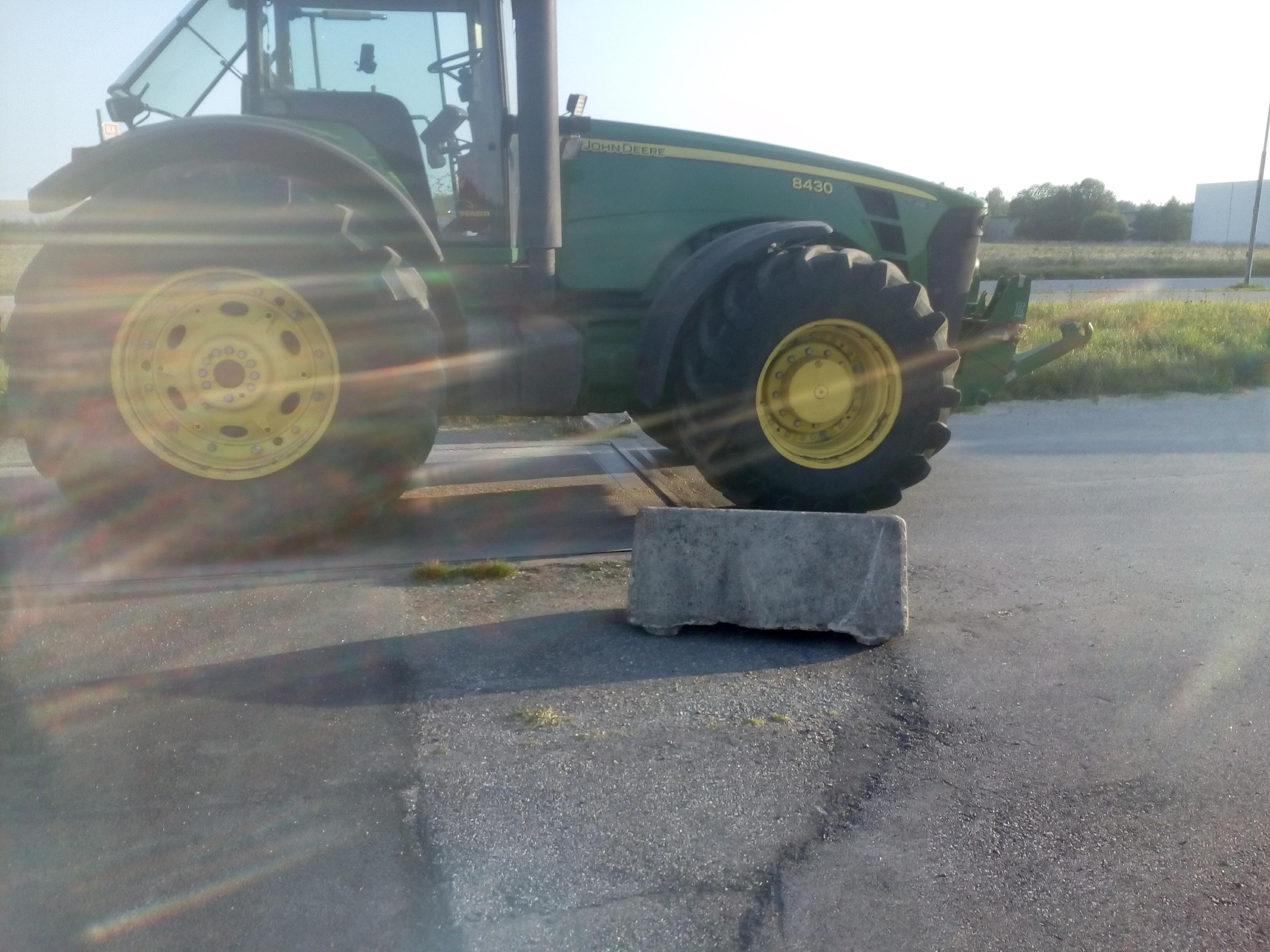 JohnDeere traktor stor och bred med tung Metsjö kärra totalvikt nära 70 ton som står fel med tyngdöverföring från framvagn till vågen