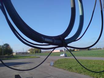 Slangar som hänger lodrätt lägg märke på slsarvigt lagad slang med rör som det samlas damm och mögeL kondens.och bsakterier salmonella
