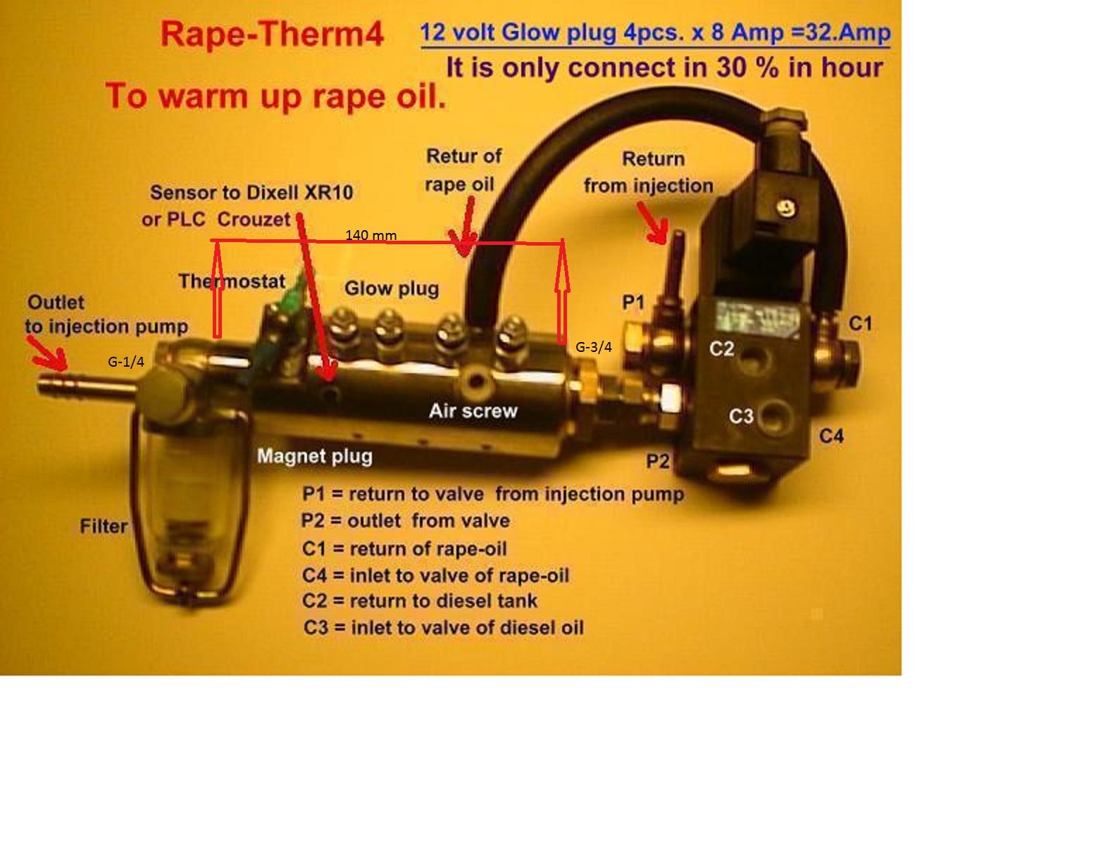 Staffan Söderberg på Hälleby Gård, Hölö kör på rå kallpressad rapsolja (Ej RME) direkt i sin traktor med en uppvärmning med "RapsTherm4" Staffan hänvisar till tester som gjorts av motoroljan från sin traktor