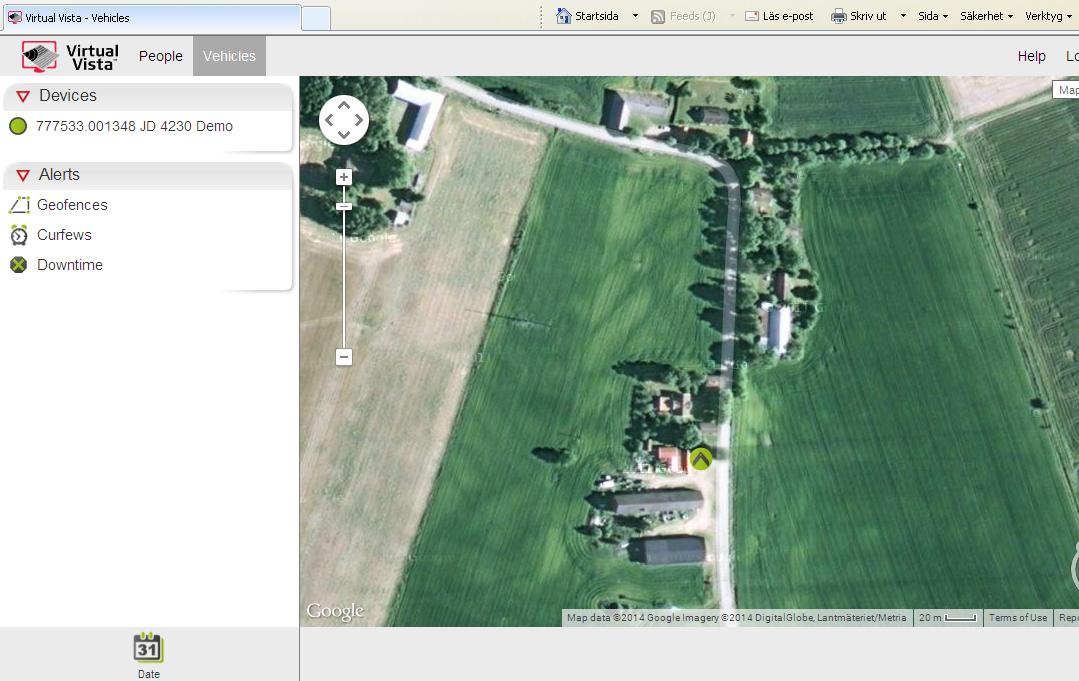 Om traktorn av någon anledning kommit till fel fält kan en zon upprättas så att det skickas ett E-mail som talar om att traktorn kommit ur kurs .