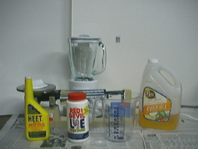 10) Safety Glasses and Rubber Gloves! Methanol and Lye are extremely poisonous and must not come into contact with skin or eyes! Methanol is a poison that attacks the eyes (ocular nerves) even if it comes into contact with your hands. Use extreme care when blending the methanol and lye, as the blender can spash the chemicals around. Put on your glasses and gloves BEFORE opening the chemicals! Do your work close to a sink or hose, or have a bucket of water handy to wash any part of your body immediately if it comes in contact with these chemicals.