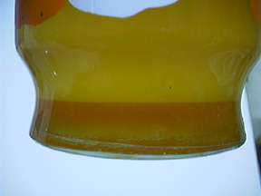 Wash-test with unwashed biodiesel -- left, after a violent 10-second shaking; right, biodiesel and water separated cleanly within minutes.