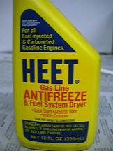 5) At least 200 milliliters (6.8 fl. oz) of methanol (Methyl Alcohol or "Wood" Alcohol). Methanol is widely available in 12 oz. quantities as "gas tank antifreeze" in auto parts stores, hardware stores and even some grocery stores. Popular brands include "Heet" and "Pyroil". Read the label carefully and make sure it says "contains methanol"! Many gas line antifreeze products contain isopropyl alcohol or "isopropanol" and will NOT work! Methanol is available in larger quantities as racing fuel through some racetracks that cater to drag racers and some "high performance" auto parts stores. Keep in mind that Methanol is both poisonous and flammable. Take all necessary safety precautions!!