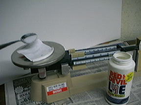 4) 1 bottle Red Devil Lye Drain Cleaner (Sodium Hydroxide) available from you local hardware store. Make sure the label says "contains sodium hydroxide". Most other drain cleaners are chlorine (Calcium Hypochlorite) based and will NOT work! Notice: Lye is poisonous! Take all necessary safety precautions!!
