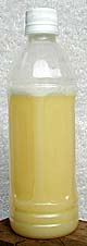 This is the most useful all-round test, and it's very simple: Put 150 ml of unwashed biodiesel (settled for 12 hours or more, with the glycerine layer removed) in a half-litre glass jar. Add 150 ml of water, screw the lid on tight and shake it up and down violently for 10 seconds or more. Then let it settle. The biodiesel should separate from the water in half an hour or less, with amber biodiesel on top and milky water below. This is quality fuel, a completed product with minimal contaminants. Wash it and then use it with confidence.