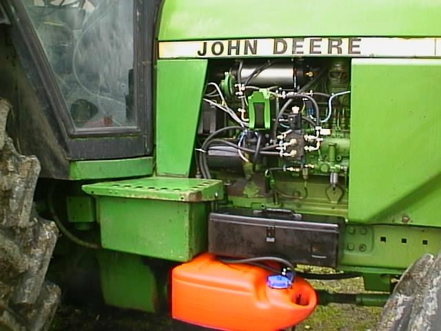Then you mount extra diesel fuel -tank about 5 litre or more.  The diesel-oil go from the extra tank to org filter to "RapeTherm4" to- the injection pump on the diesel engine.