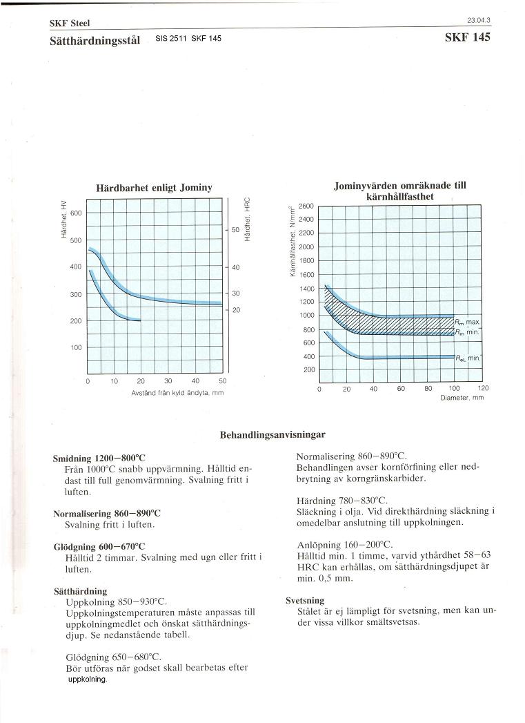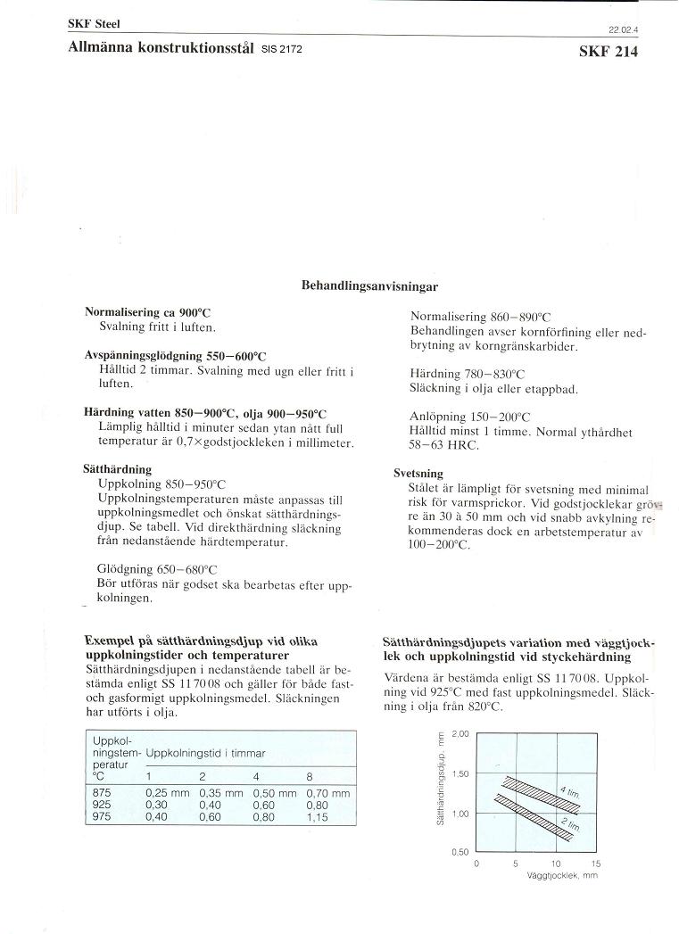 Härdning av stål:                                    SIS 2172, SIS 2142, SIS 2511, SIS 2140 SIS 2260 mm.