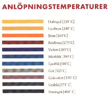 Färger härdning olika temperaturer             Färger anlöpning olika temperaturer Hårdhetstabell HB, HV, HRB, HRC