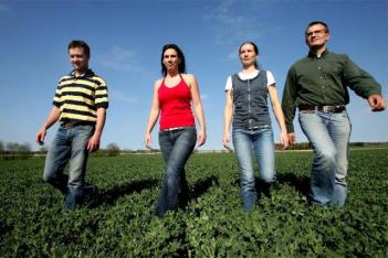 På väg med förnybar energi. Fyra av lantbrukarna bakom Energifabriken, som